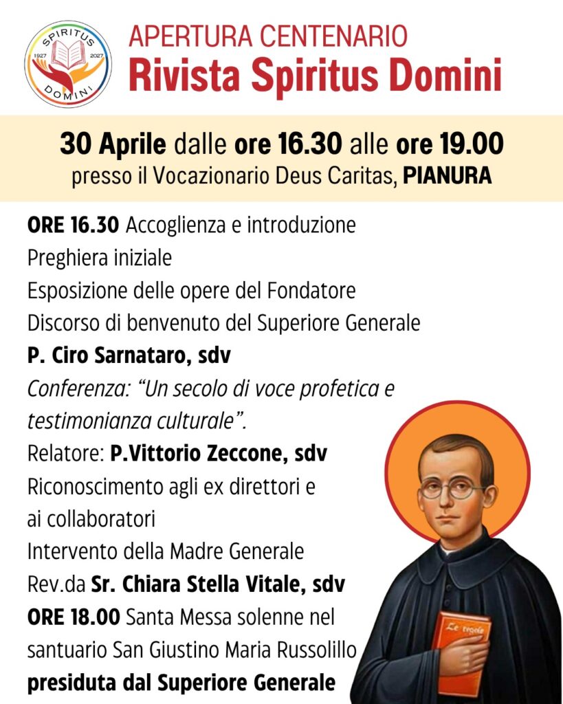 Apertura Anno Centenario della rivista di spiritualità Vocazionista Spiritus Domini