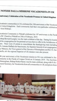 Il giorno 10 febbraio presso la parrocchia Corpus Christi di Posillipo, Napoli, sono stati ordinati sacerdoti i due religiosi vocazionisti Gabriele Eneke e Salvatore Grazioso.