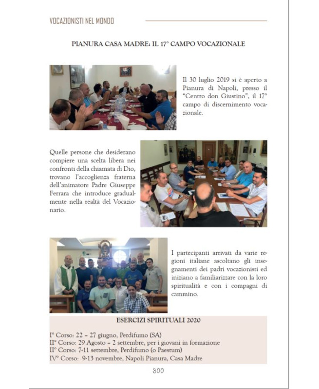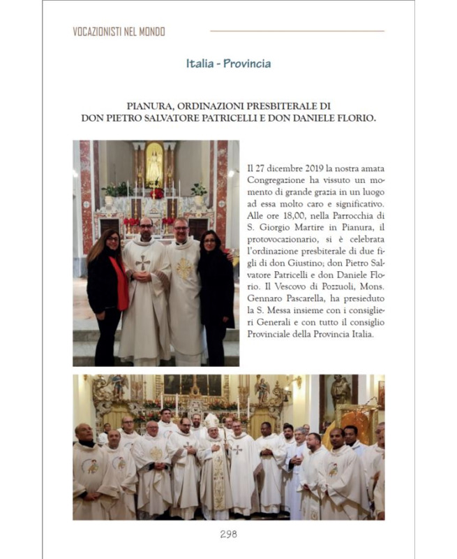 Il giorno 19 marzo 2024 il religioso Salvatore de Martino, ascritto alla provincia italiana dei Vocazionisti, ha emesso la professione perpetua nella congregazione dei Vocazionisti.